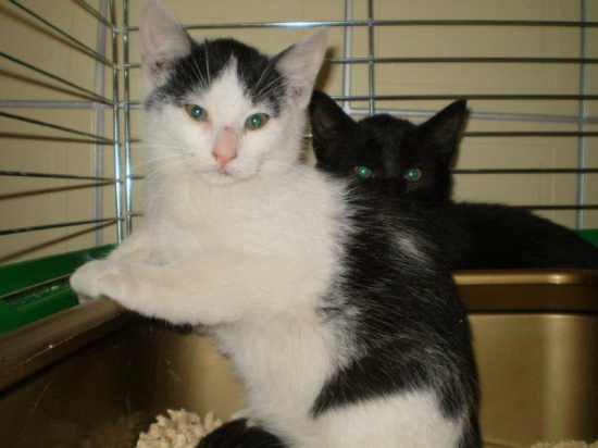 Ostatnie takie cudeńka  -  ostatnie, bo kocia mama po latach usiłowań dała się złapać na sterylkę. Zadbała o swoje dzieci  -  śliczny łaciaty chłopak i czarniutka parka są w bezpieczne domu tymczasowym i proszą o domki dla siebie. Jeszcze troszkę lękliwe po doświadczeniach z ulicy, ale czyściutkie, wesołe, chętne do przyjaźni z człowiekiem potrafią się przytulać i pięknie mruczeć na rękach. Może na Twoich rękach? Urodził się w środku września 2014, są zaszczepione i odrobaczone, mają książeczki zdrowia.