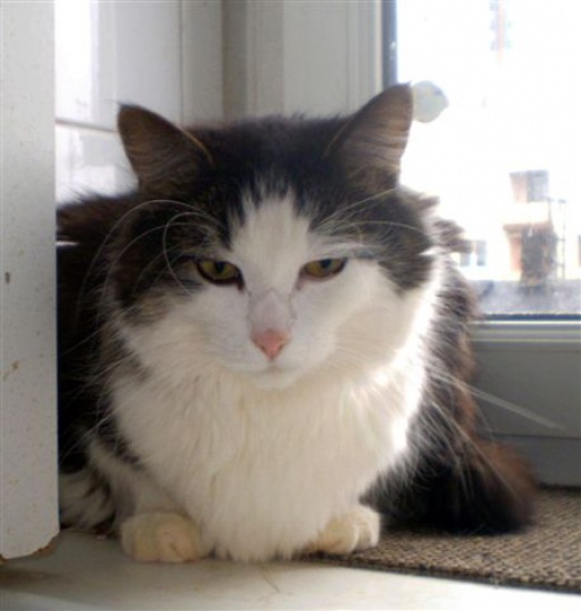 Długowłosy Ramzes  -  po śmierci opiekunki razem z kuwetą i miseczkami wyrzucono go po prostu na śmietnik…. I ten piękny ogromny kocur jakoś sobie radził, ciągle przesiadując pod klatkę i czekając, aż ktoś coś rzuci do jedzenia. Dopóki nie zachorował  -  teraz już jest zdrowy, ale tendencje do kamieni moczowych zostały, no i musi jeść karmę weterynaryjną, na tej diecie to zdrowy i zadowolony król życia. Uwielbia zabawę, potrafi długo ganiać za sznurkiem, rzuconą piłeczką, myszką na wędce. Nie boi się obcych, chętnie przychodzi się przywitać, pogłaskać. Ale to samiec alfa, goni inne koty, opiekuna potrafi złapać za rękę, podrapać. Powinien być ukochanym jedynakiem osoby, która potrafi go opanować i stać się dla niego przywódcą, i już nigdy go nie porzuci. Ma może 4 lata, jest wykastrowany, odrobaczony, ma książeczkę zdrowia.