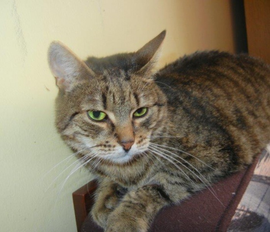 Zielonooka Kasia - drobna burasia, kotką domową, która kilka lat żyła na podwórzu. Nie wiadomo, jak i kiedy straciła dom. Jest spokojna, grzeczna, nie boi się ludzi, pięknie mruczy dziękując za głaskanie. Czyściutka, ładnie korzysta z kuwetki. Obecnie przebywa w domu tymczasowym, gdzie nie czuje się najlepiej z uwagi na obecność innych kotów. Nie przepada za nimi, ale ich nie goni, chce tylko aby dały jej spokój. Większość dnia przesypia, niczego nie niszczy, nie rozrabia. Nie wymaga wiele, chce tylko być obok człowieka. Byłaby znakomitą towarzyszką dla kogoś, kto nie może kotu poświęcić zbyt wiele czasu, ale także dla starszej osoby, która obawia się kocich harców. Niestety, Kasia cierpi na powracające raz na kilka miesięcy zapalenie dziąseł, przestaje wtedy jeść, wymaga wizyty w lecznicy oraz podania leków. Czy to przekreśla jej szansę na znalezienie domu na resztę życia? Kasia ma około 5 lat, jest wysterylizowana, odrobaczona, ma książeczkę zdrowia.